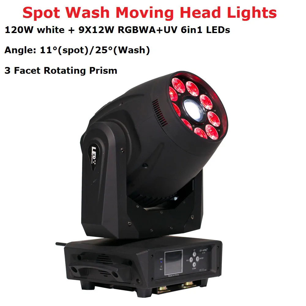 1Pcs/Lot Stage Dj Disco Nightclub Bar Lights High Quality 9X12W RGBWA-UV 6IN1 LEDS + 120W LED Gobo
