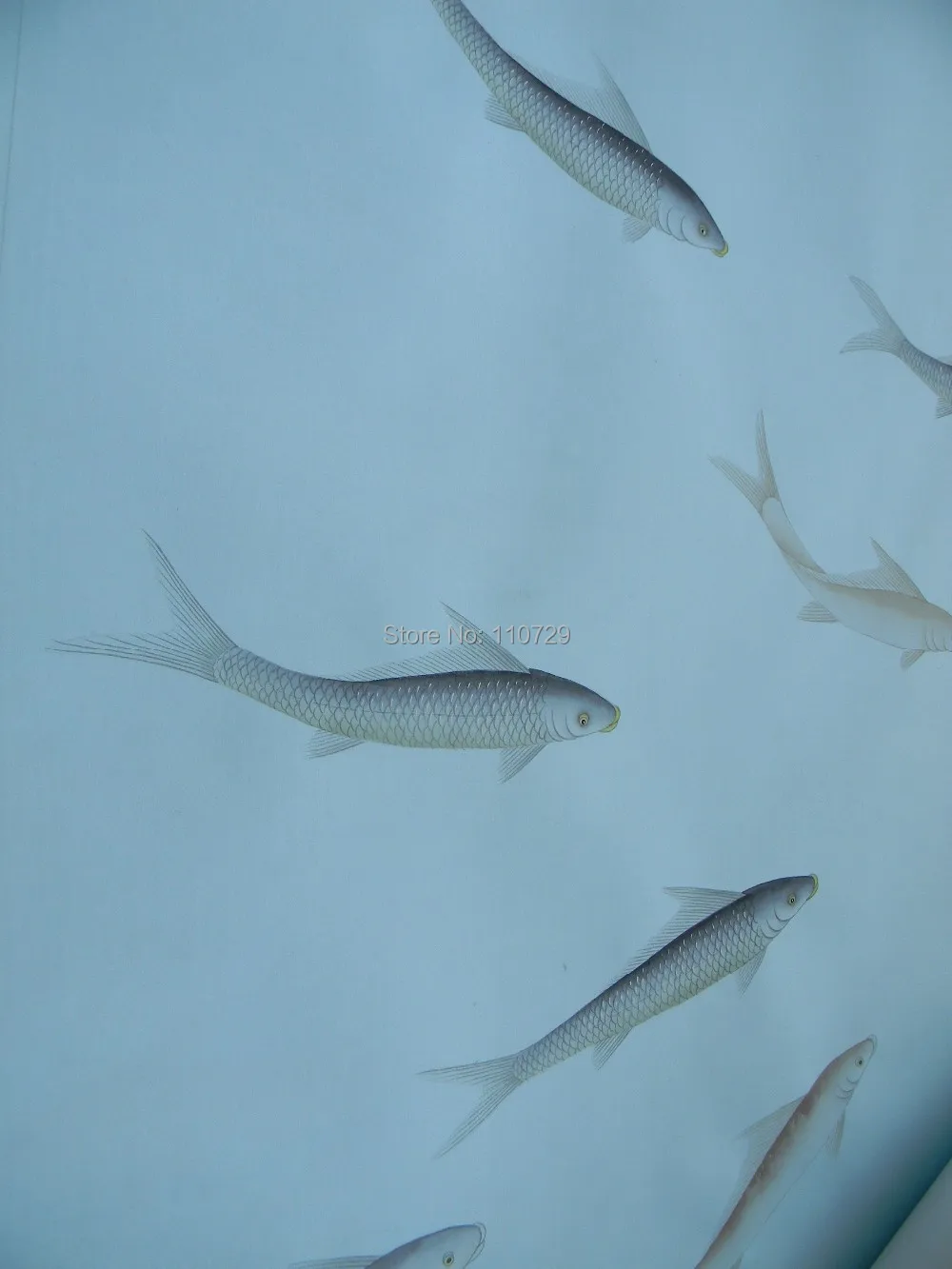 BEST QUALITY hand painted silk wallpaper fish picture wallcover sticker