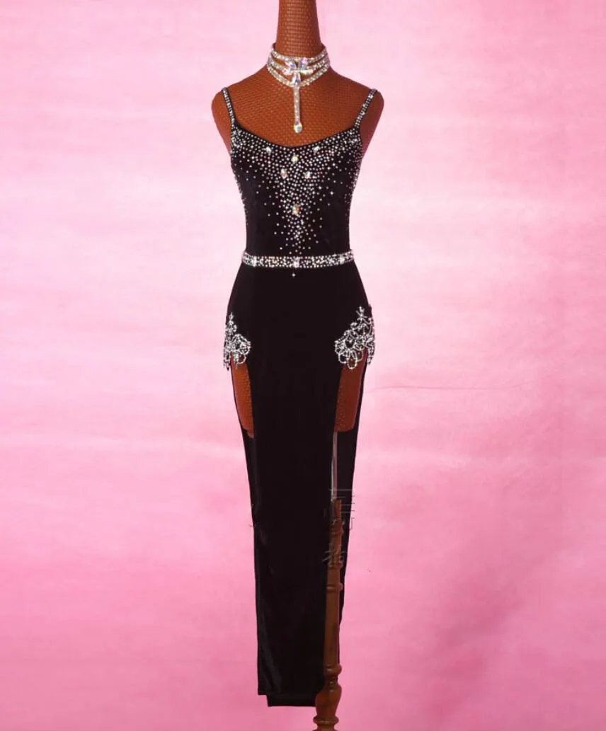 Best Shiny Rhinestone Embroidered Latin Dance Dress Women High-end Custom Club Party Dancer Singer Enter